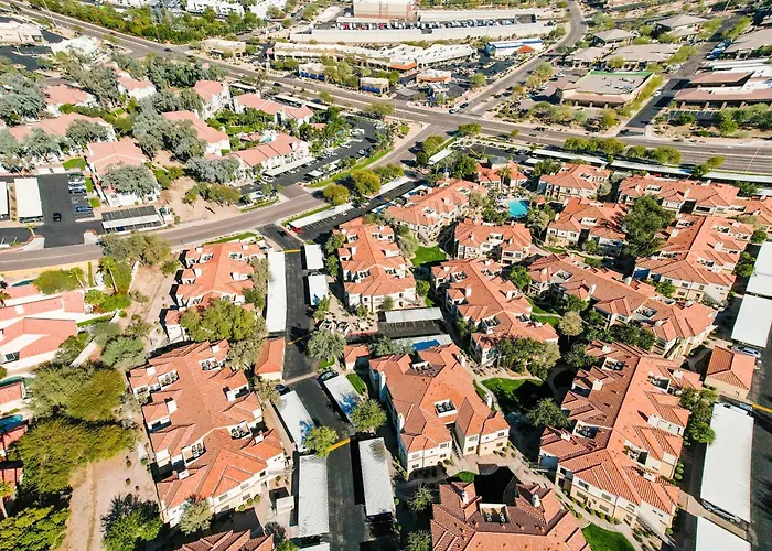 The 2-room Heated Pool, Spa, Fitness Center, Central Location Scottsdale apartment is about a 10-minute drive from Dolphinaris Arizona Aquatic Center in the North Scottsdale district and welcomes guests with a spa bathtub and a hot tub. The apartment is 2.7 miles from Butterfly Wonderland Animal Park in Scottsdale.